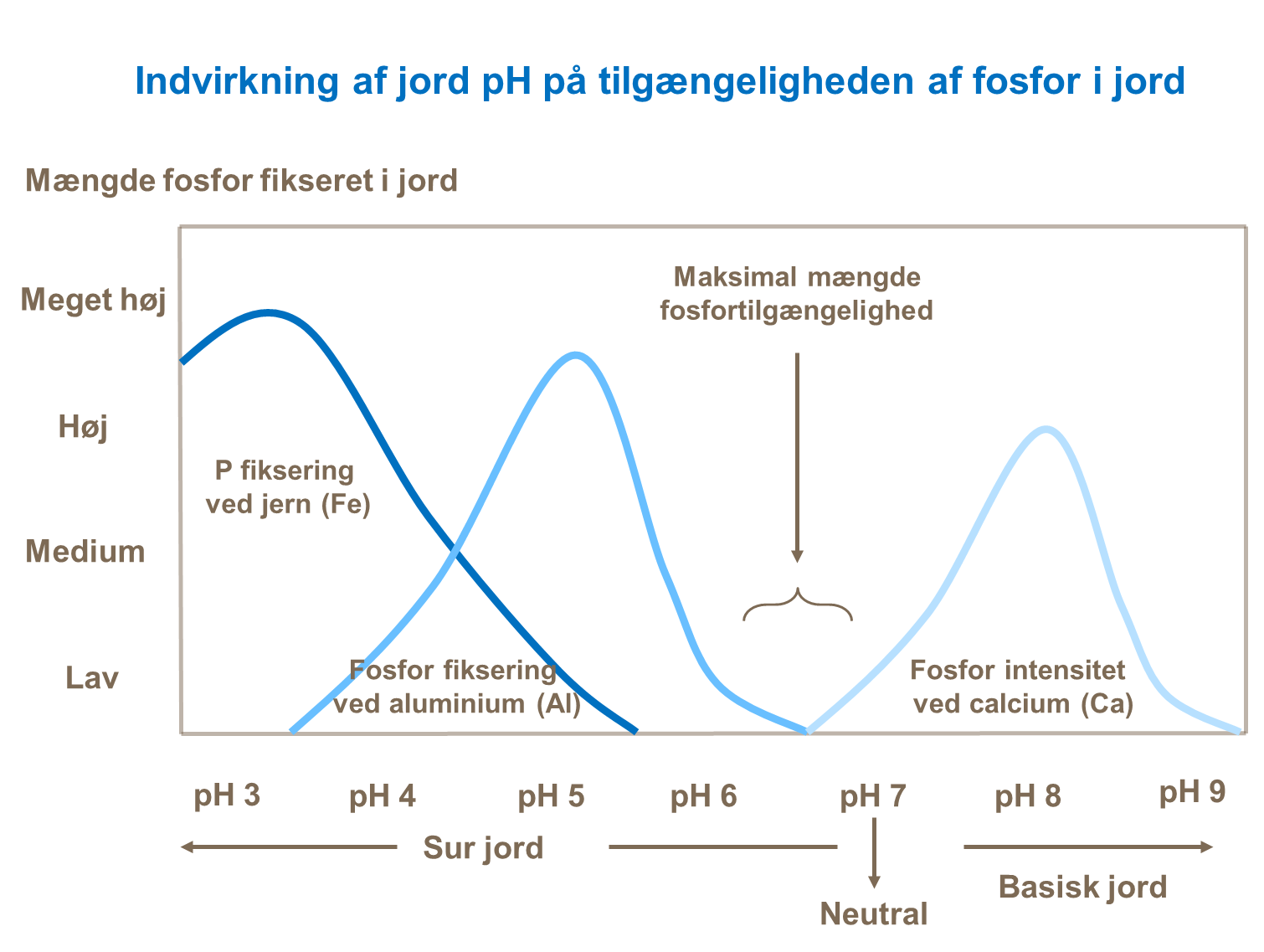 Figuren herunder viser reaktionstallets indflydelse på tilgængeligheden af fosfor.