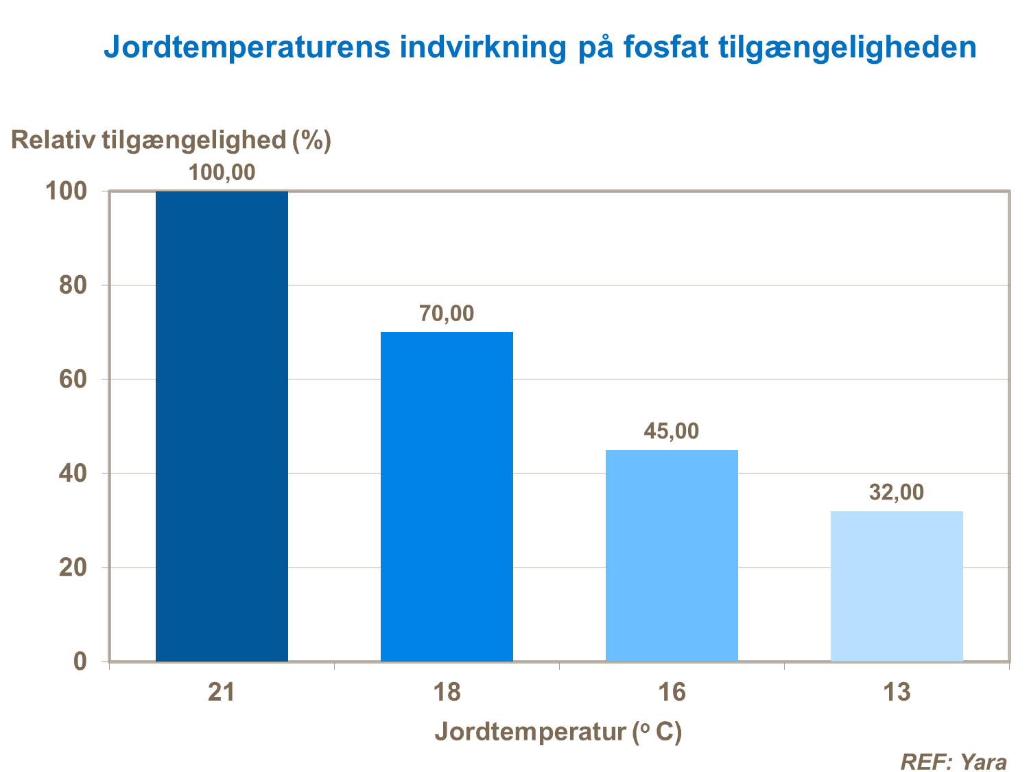 Temperaturer har også en stor indflydelse på tilgængeligheden af fosfat som kan ses herunder.