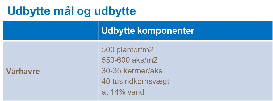 Antal skud vil afhænge af mængden af såsæd, sådybde, buskning tidligt på vækstsæsonen og mængden af planter der overlever til buskningen. Sådybden har en stor effekt på vægten. Såsæd der er sået meget dybt, vil opnå en svagere buskning. Kernevægten ved høst afhænger af antallet af planter, der har produceret frugtbare skud.