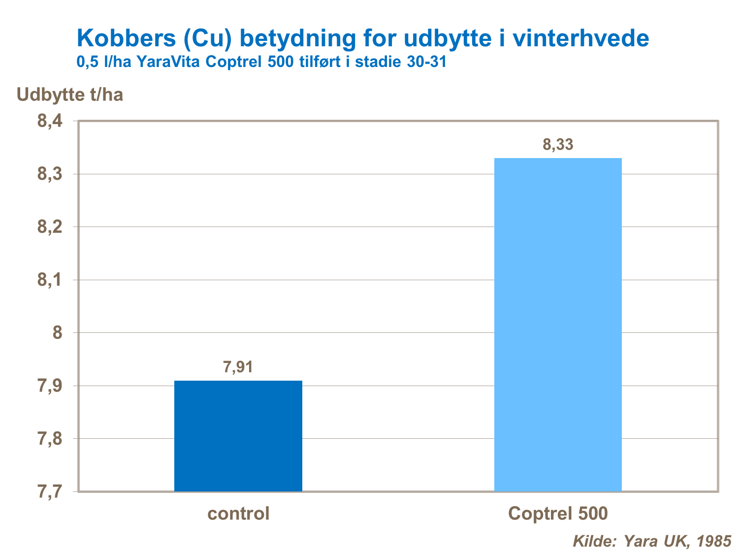 Herunder kan du se andre forsøg med forskellige næringsstoffer og deres påvirkning af udbyttet og antallet af kerner i vinterhvede.
