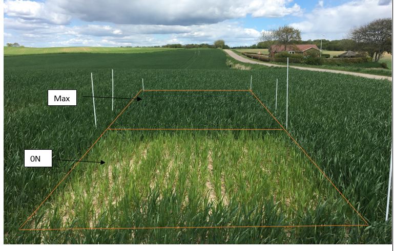 Ved måling i nulparcel den 15-05- 2020 i hvedens stadie 37-39 er der optaget ca. 34 Kg N/ha. På nuværende tidspunkt forventes der ikke nævneværdigt mere mineralisering fra jorden. Der er ikke etableret en synlig maks-parcel.