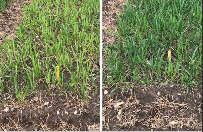 Kvælstofoptaget fra det tilførte kvælstof i vinterhveden i Himmerland er knapt begyndt. Hveden har haft det tørt og de kolde nætter har lagt en dæmper på væksten. Mineraliseringen fra jorden er heller ikke begyndt og der er ikke optaget kvælstof i parcellen som ikke er tilført kvælstof.