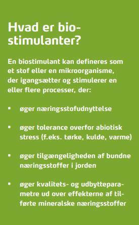 Der er for tiden meget fokus på biostimulanter, og der markedsføres i disse år flere biostimulanter i Danmark end nogensinde før. Flere større producenter og distributører satser nu langt mere på biostimulanter, og produkterne går fra at være en absolut niche til at have en mere bred og almen interesse.