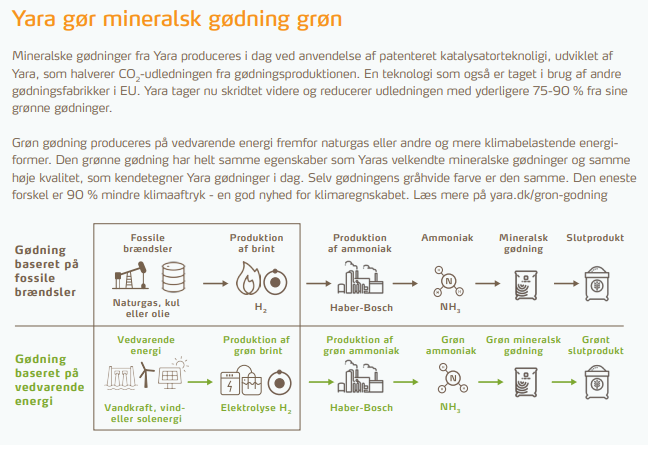 ”Yara søger hele tiden at gøre det mere enkelt for landmanden at træffe de rette valg, når det gælder gødning. Ikke kun når det gælder gødningens kvalitet og sammensætning, men også når det kommer til klima og miljø. De gødninger, vi tilbyder landmanden i dag, har allerede et halvt så stort CO2-aftryk sammenlignet med ikke EU-producerede gødninger”, siger Martin Seemann, marketingchef i Yara Danmark. Med de nye grønne gødninger kan landmanden snart komme op på at reducere sit aftryk med yderligere 80-90 %.