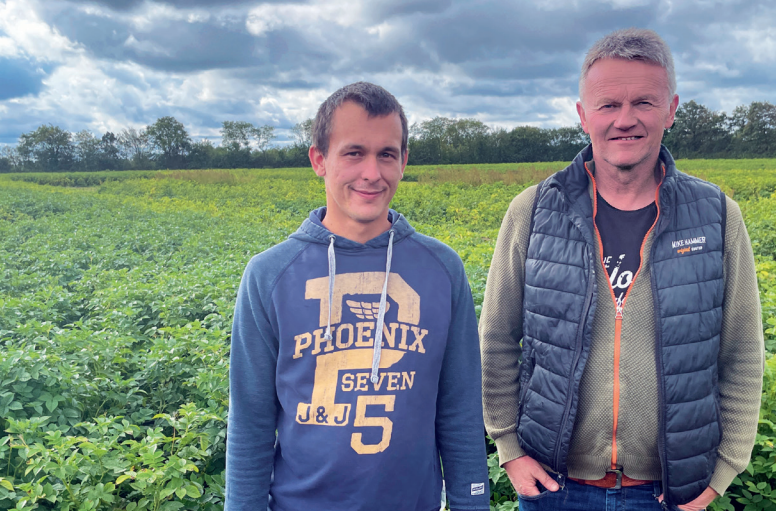 Hans Jørgensen (th.) og hans driftsleder Joakim Schmidt (tv.) dyrker 900 ha planteavl, heraf 300 ha med kartofler.