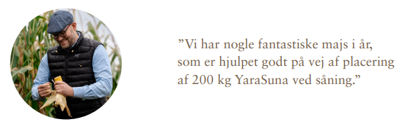 På Holmsgaard har man sikret etableringen af især vårafgrøder ved placeret gødskning med YaraSuna, det har medvirket til kraftige afgrøder efter fremspiring og en fantastisk majs