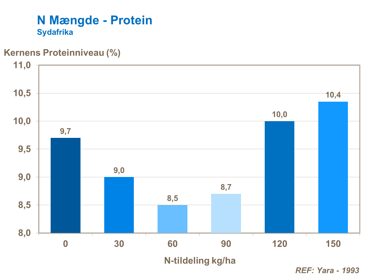 Dårlig kvælstofforsyning under kernefyldningen fører til lavere proteinindhold. En afbalanceret kvælstofforsyning under majsplantens strækning kan hjælpe til forbedret proteinindhold og sørge for den rette mængde kvælstof under kernefyldningen.