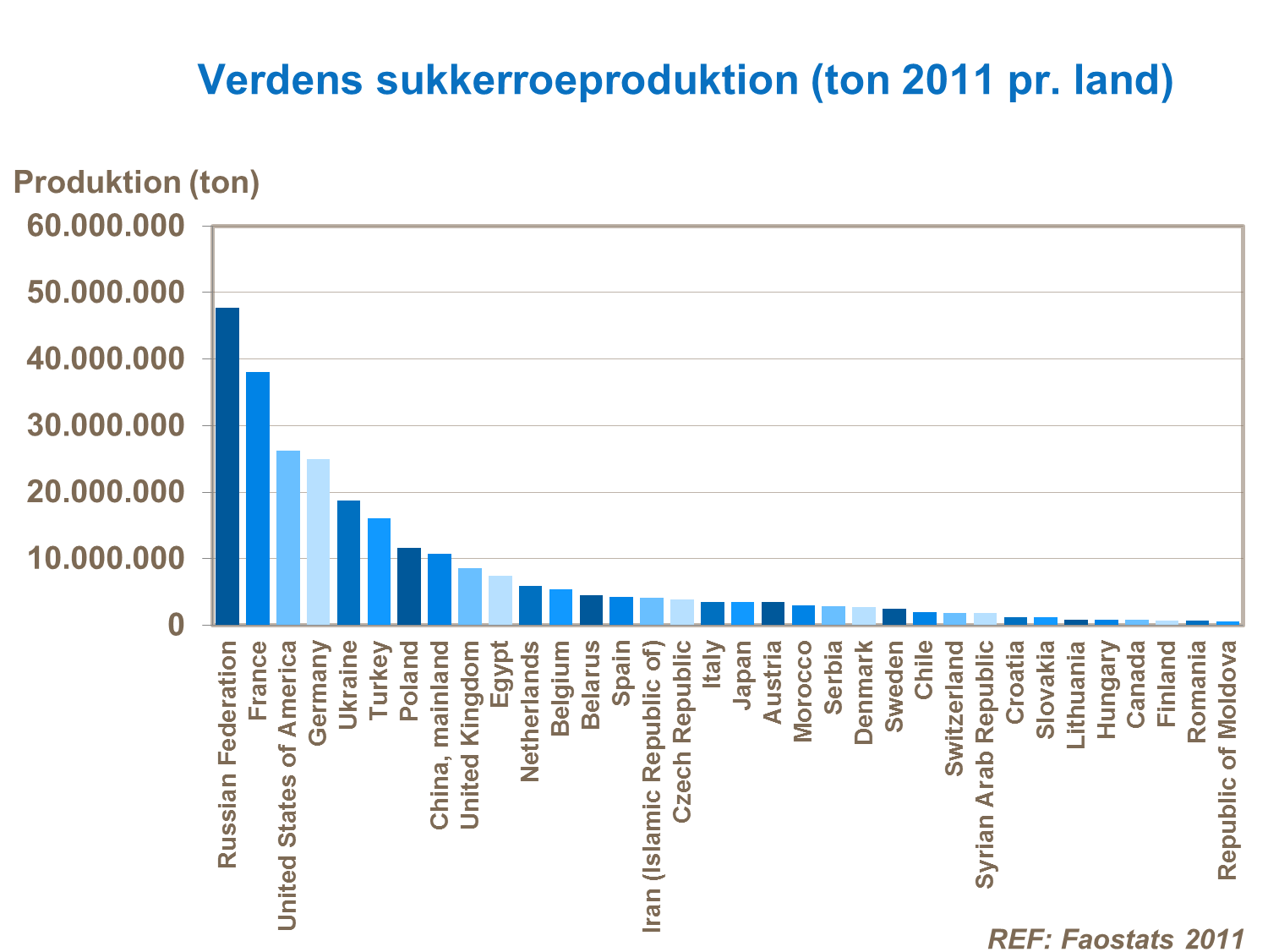 I Danmark dyrkes der ca. 38.000 ha med sukkerroer, hovedsageligt fordelt på Lolland Falster og det sydlige Sjælland.