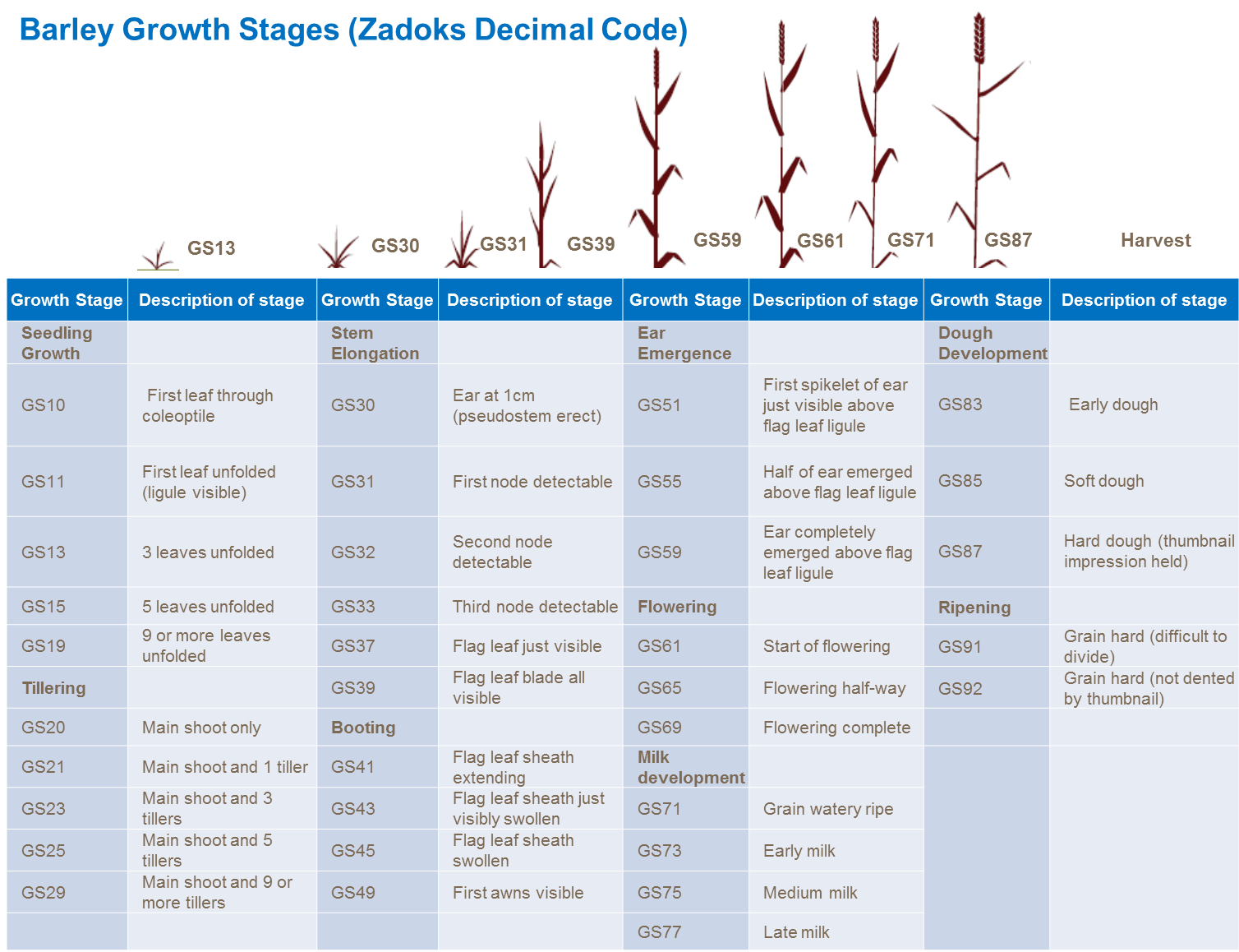 Ved vækststadie 31 vil 75 % af lyset blive indfanget. Ved st. 59 vil bladmassen være fuldent og klar til at opfange 95% af den phytosentetisk aktive stråling (PAR). Væksten sker meget hurtig i denne periode, hvilket stiller krav til det daglige næringsstofbehov. Fasen kaldes også den store vækstperiode på engelsk ”The Grand Growth Phase” og på tysk ”Der grosse periode”.