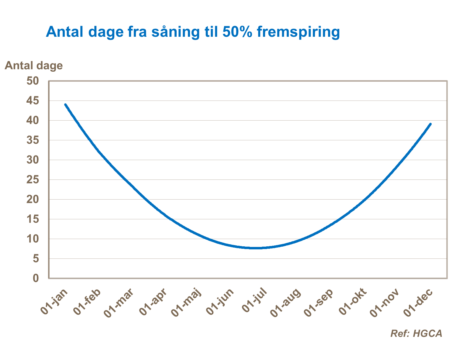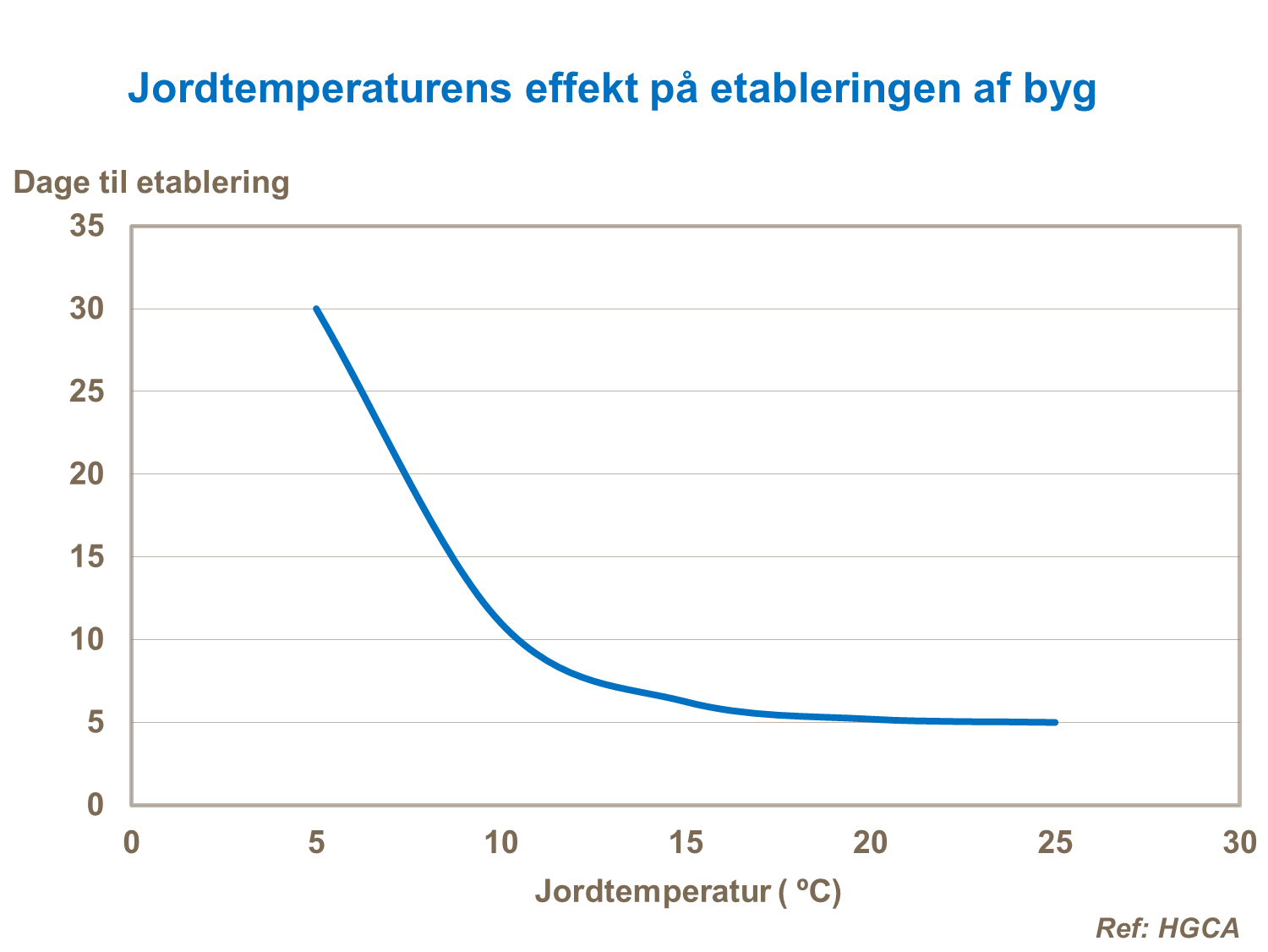Når jord temperaturen bliver varmere vil afgrøderne hurtigere etableres (se graf).