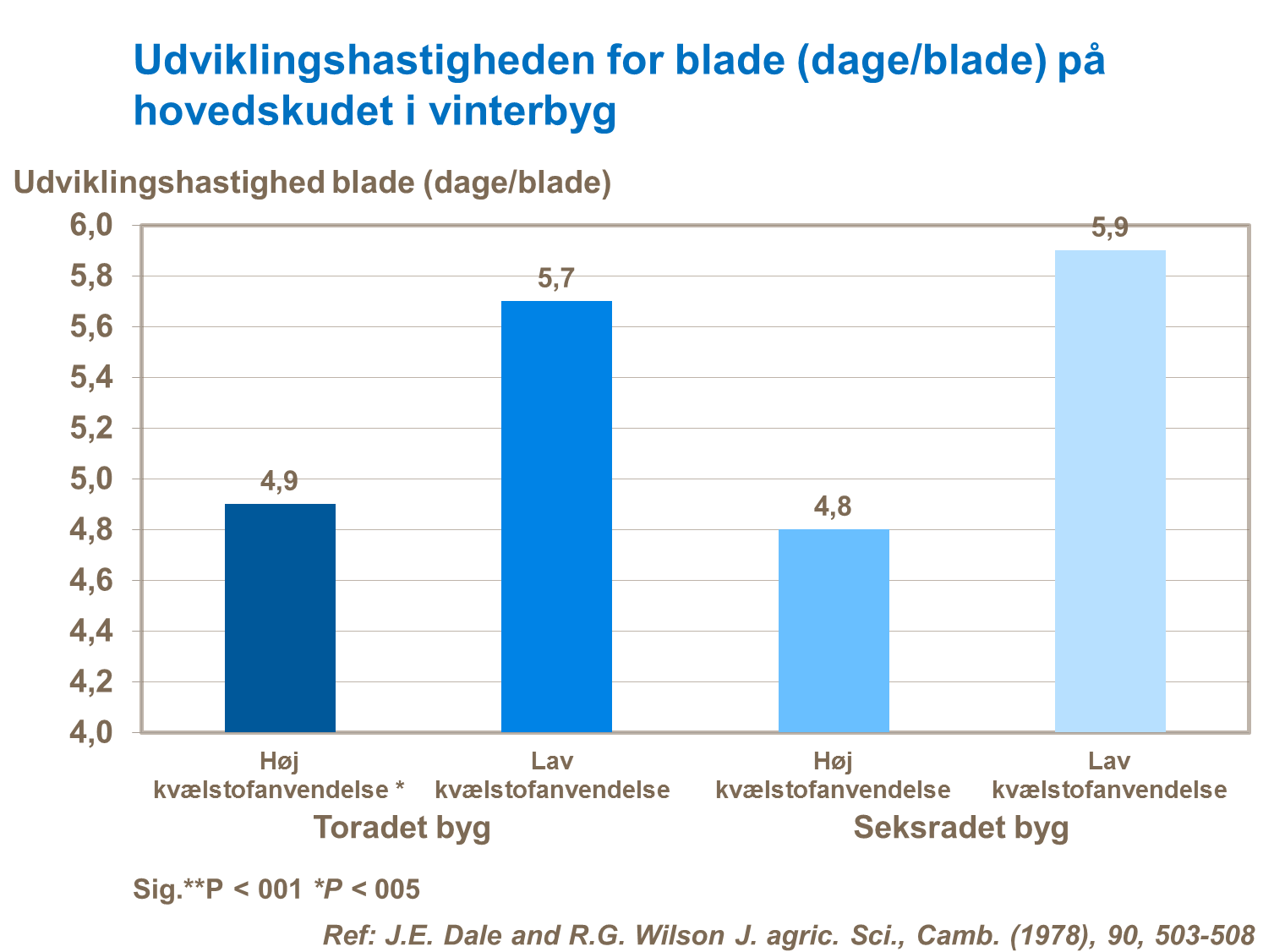Det er også vigtigt at bemærke, at anvendelsen af de rette mængder kvælstof ved bladmassens udvikling, ikke har en effekt på den fysiologiske udvikling. Denne udviklingstid er ofte karakteriseret ved fremkomsten af fanebladet.